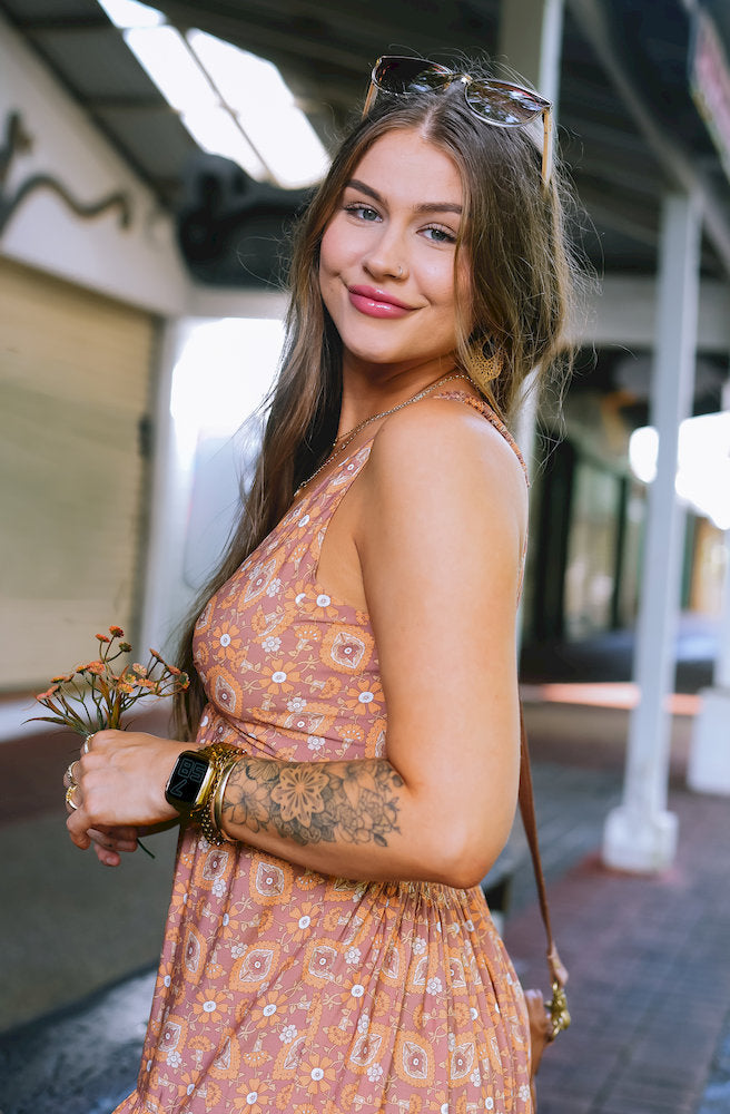 The Brown Bayou Seeker Dress by Honey Bunch is the kind you reach for when you want to feel effortlessly feminine and relaxed. Handcrafted in small batches by artisans in Bali, this bohemian maxi blends soft structure with free-spirited charm, making it a standout warm-weather staple.