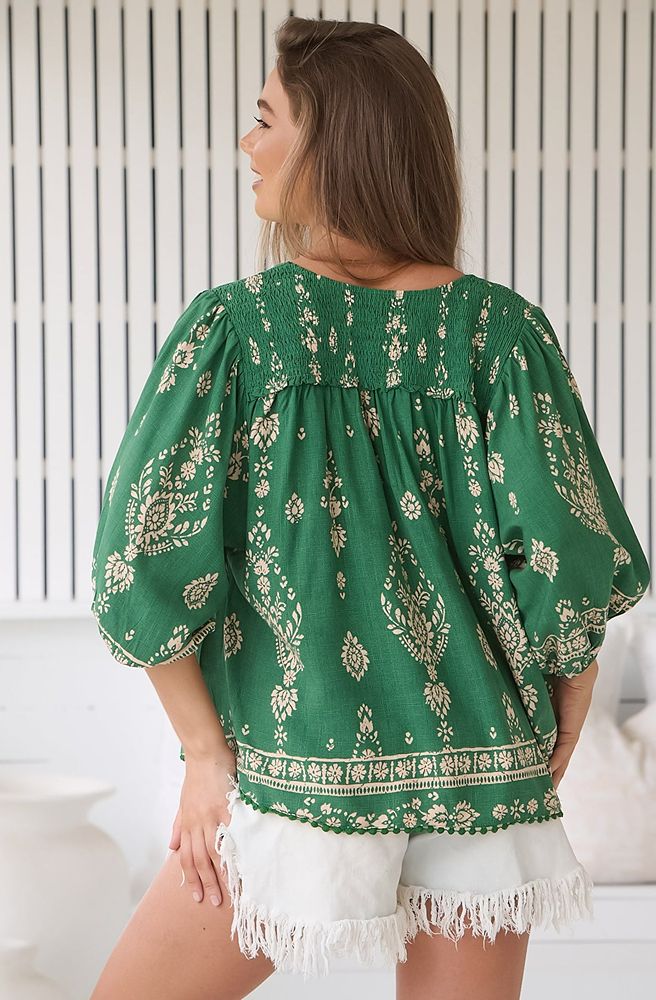 Elevate your everyday style with the Jaase Kiva Print Rue Top — a floaty bohemian blouse designed for effortless charm and relaxed elegance. With its dreamy Kiva floral print, soft drape, and vintage-inspired detailing, this beauty brings that sun-kissed, free-spirited feel to your wardrobe.