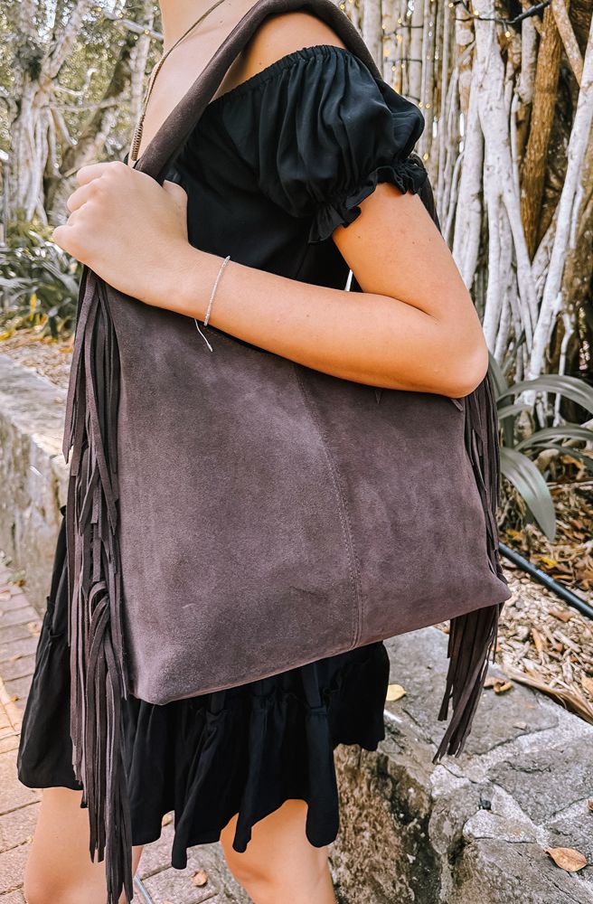 Step into effortless bohemian style with the Driftwood Fringe Bag — a soft suede shoulder bag that brings all the free-spirited charm. Crafted from premium cow suede leather, it’s buttery soft to the touch and perfectly sized for your everyday adventures. The long, flowing fringe adds movement and texture, while the earthy tones make it an easy match for any outfit.